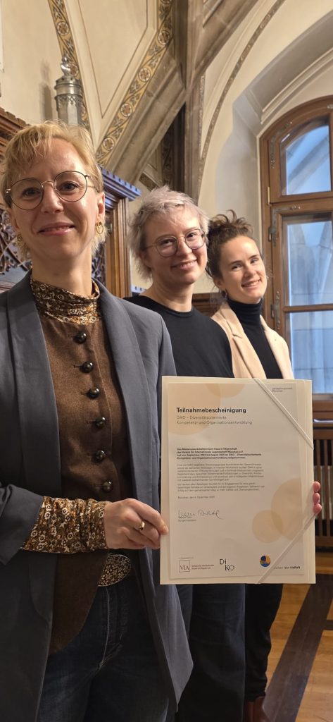 Dafür haben wir nun also am 04.12.25 auch ein Zertifikat ausgestellt von der Stadt München und übergeben von unserer Bürgermeisterin Verena Dietl erhalten – und das wirklich verdient!